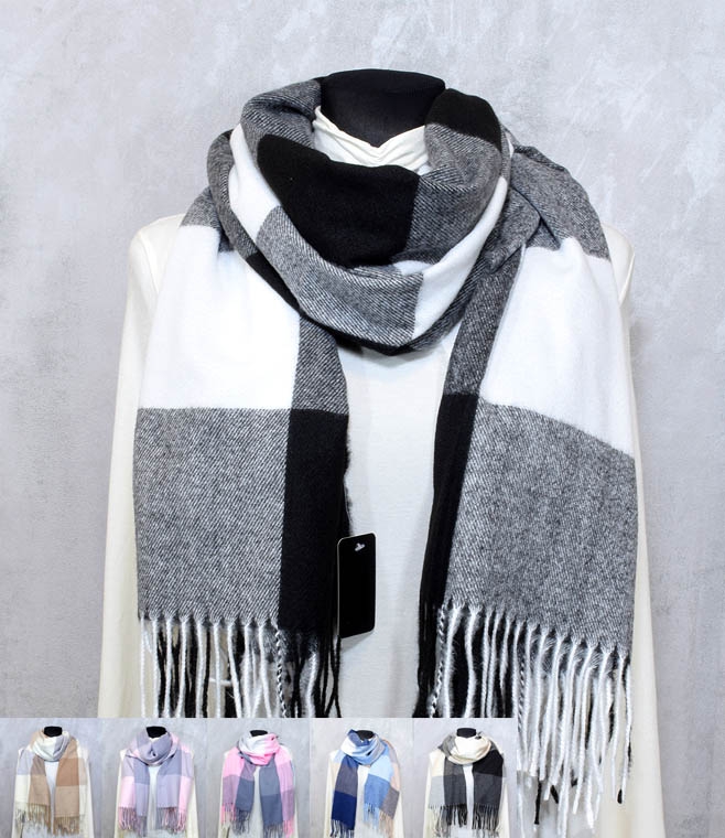Ciepły szal z frędzlami Bruno Rossi – klasyczna krata w nowoczesnym wydaniu.