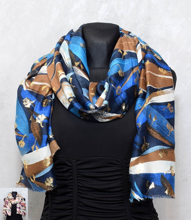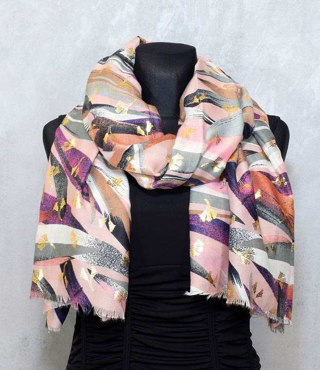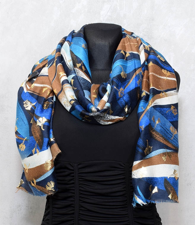 Zachwyca wyrazistą, żywą kolorystyką z lekkim złoceniem, które mieni się w świetle i przyciąga spojrzenia. Nietuzinkowy wzór w mazy nadaje mu artystycznego charakteru i sprawia, że szal prezentuje się naprawdę zjawiskowo.