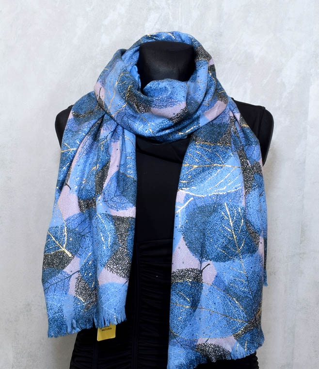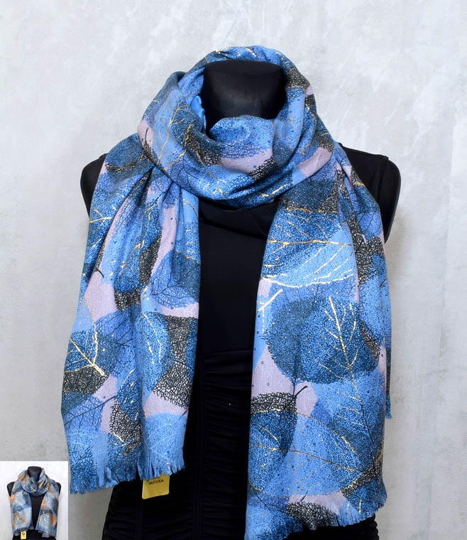 Elegancki jesienny szal – zachwyca swoim malarskim wzorem liści, który wygląda niczym przeniesiony z płótna artysty. Nasycone barwy w połączeniu z subtelnym, złotym połyskiem po jednej stronie dodają mu elegancji i unikalnego charakteru. To idealny wybór dla kobiet ceniących połączenie stylu, wygody i jakości.