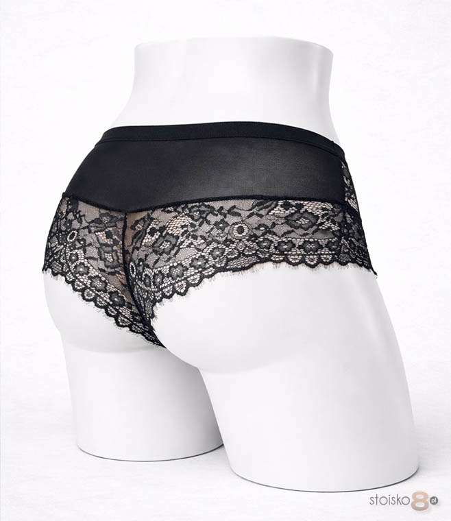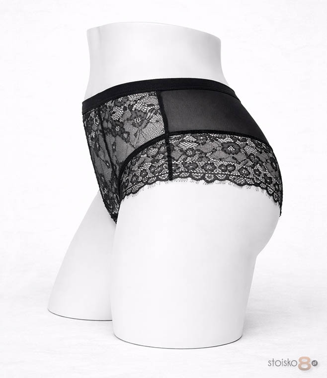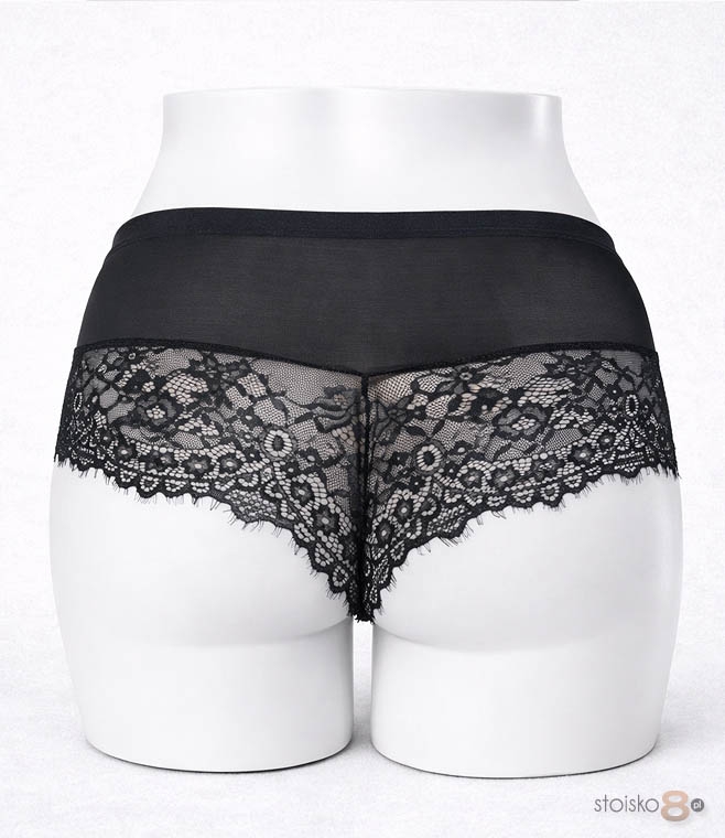Model firmy Hon2 wykonany został z miękkiej, przyjemnej w dotyku siateczki połączonej z efektowną koronką. Koronkowy przód nadaje bieliźnie romantycznego charakteru, subtelnie podkreślając kobiecość. Tył stanowi połączenie delikatnej siateczki i eleganckiej koronki, dzięki czemu całość prezentuje się lekko i zmysłowo.